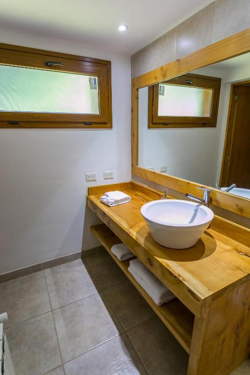 El complejo no tiene salida al lago, solo hay vista al lago desde los cuartos de las cabañas pero se puede llegar a la costa del lago por un camino o sendero cercano a las cabañas de bosques autóctonos.